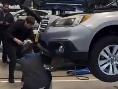 車のエンジンルームに野生のウサギが入り込んでしまった。整備工場で救出を試みる → 結果…