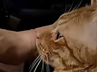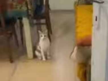 部屋の中に1匹のネコがいた。ちょっ、あぶない! → もう1匹はここにいます…