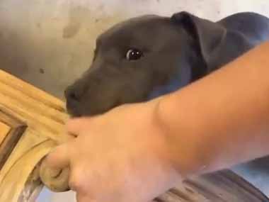保護施設から1匹のイヌを引き取った。すぐに水辺に連れてきた → こうなった…