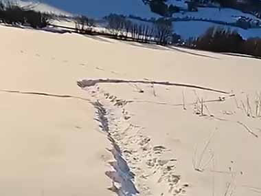イヌが雪の積もった日に散歩する。ズサ~♪ → 犬、ボブスレーです…