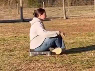 お姉さんが地面に座り込んだ。これが私の癒しの時間! → こうなります…