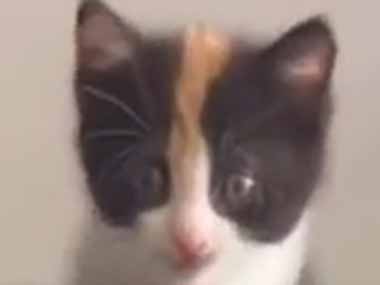 子猫がオモチャを咥えて歩いてきた。前方には鏡がある → こんなリアクションになった…