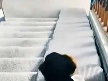 階段の横に子犬用のスロープを作った。ちゃんと安全かテストしないとね → 子犬はこれで確認します…