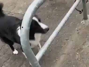 歩道に「車止め」が並んでいた。困難な道をボクは行く! → 散歩中の犬はこうします…